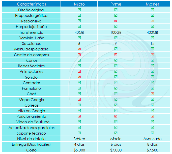 En Shâng de Lâ, Web Design sabemos que es importante una correcta elección del diseño web, por ello te mostramos a continuación una tabla comparativa con nuestros distintos Planes de Diseño Web, para que la elección sea más sencilla y se ajuste a las necesidades de tu empresa y/o negocio.